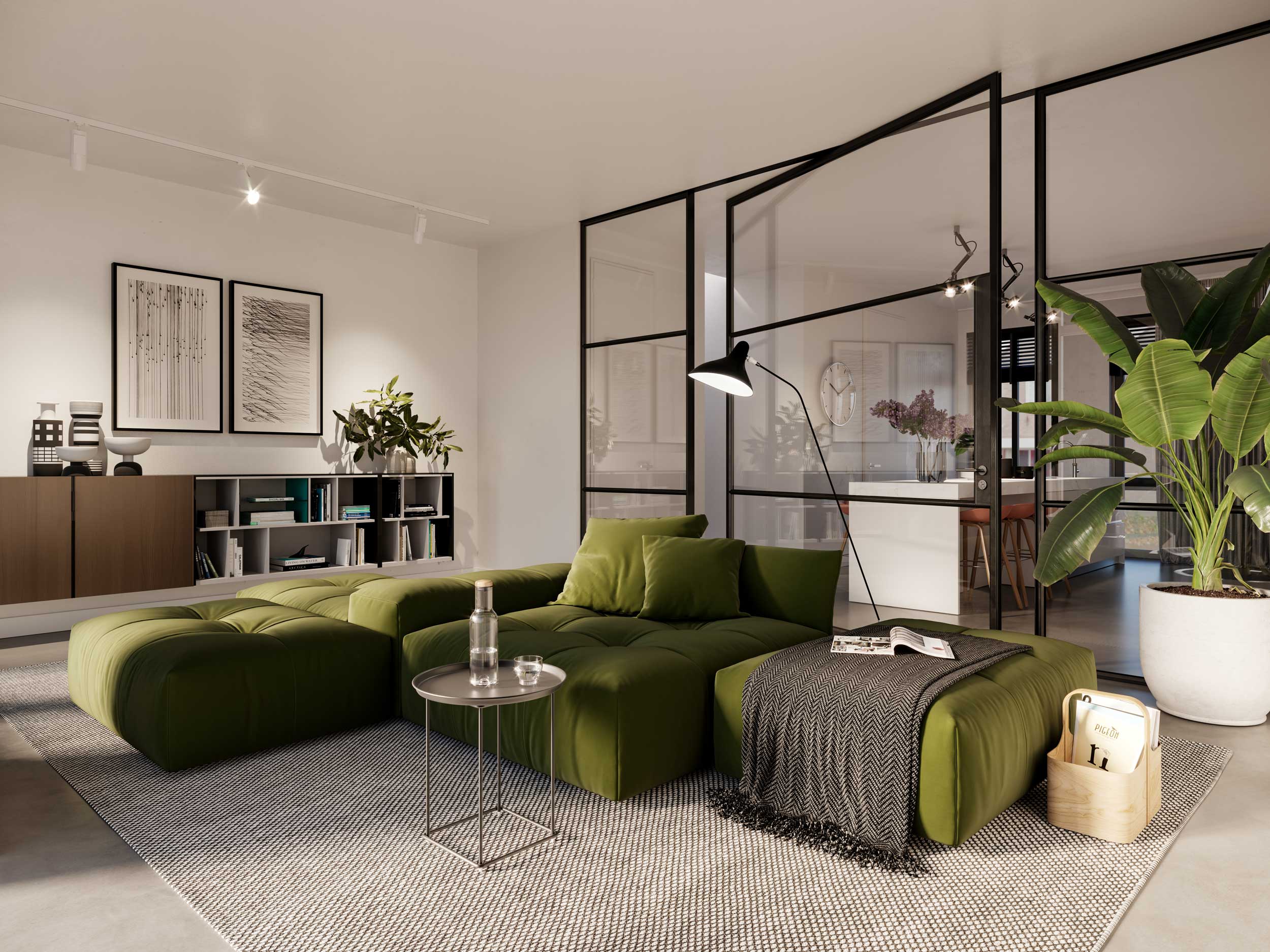 Bijna alle huizen hebben rechte hoeken. Dat is praktisch en gemakkelijk om te bouwen, maar ook voorspelbaar. Bij dit herenhuis hebben de architecten van Cortile gekozen voor creativiteit. De woning waaiert uit naar de tuinzijde. Je interieur krijgt daardoor vanzelf een verrassend en eigentijds karakter. In de twee voorbeeldplattegronden hebben we de keuken aan de voorzijde geplaatst. Het living-gedeelte wordt daardoor een soort tuinkamer. Je zou het eigenzinnige gevoel kunnen versterken met een glazen scheidingswand. Ook de tuin heeft trouwens een bijzondere, geknikte vorm. Aan de binnenplaatskant zou je een besloten zithoek kunnen maken.