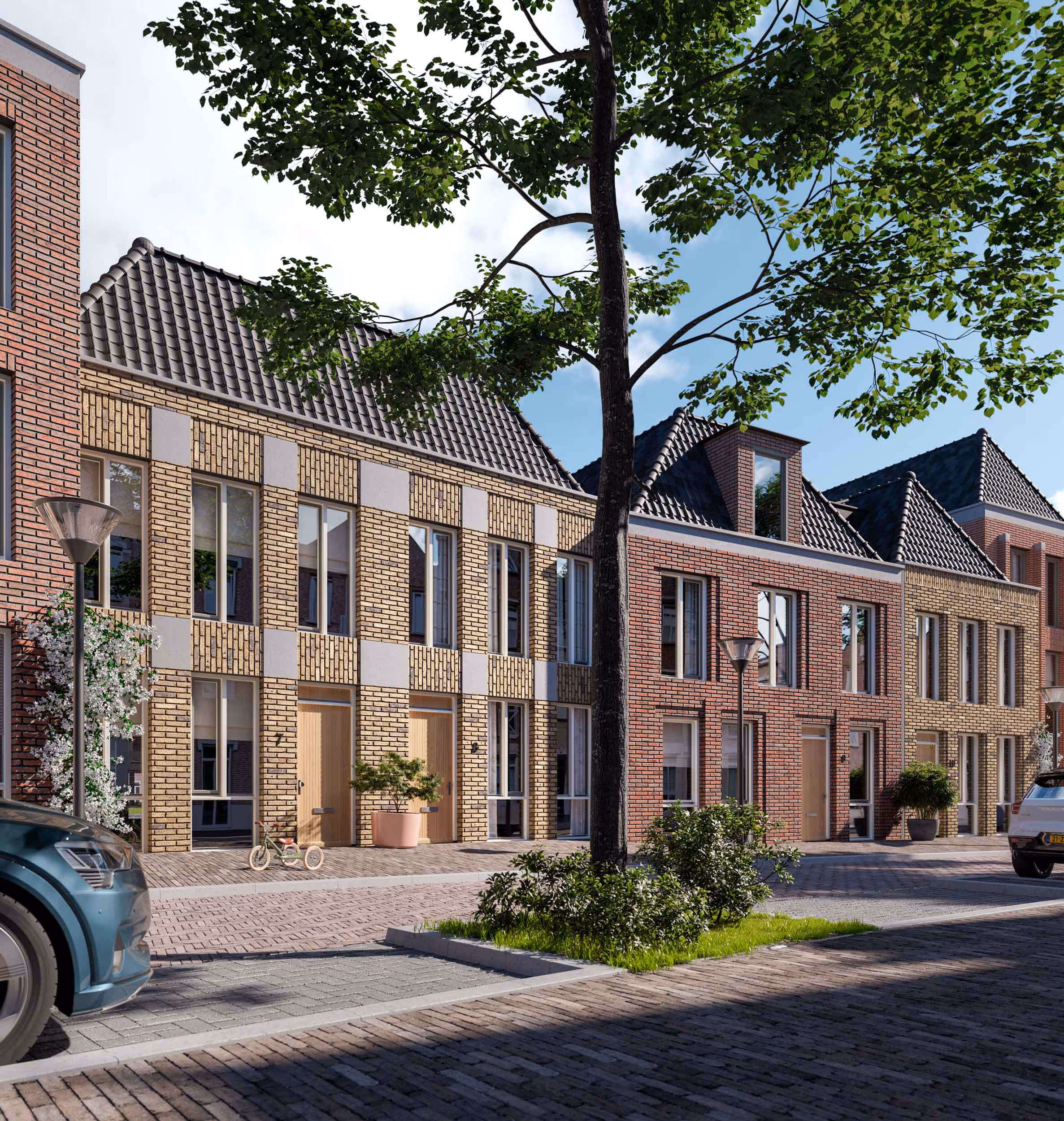 Klassieke luxe ontmoet eigenzinnige architectuur. Dit herenhuis heeft een gewaagde schuine wand. Bouwnummer 8 is gespiegeld.